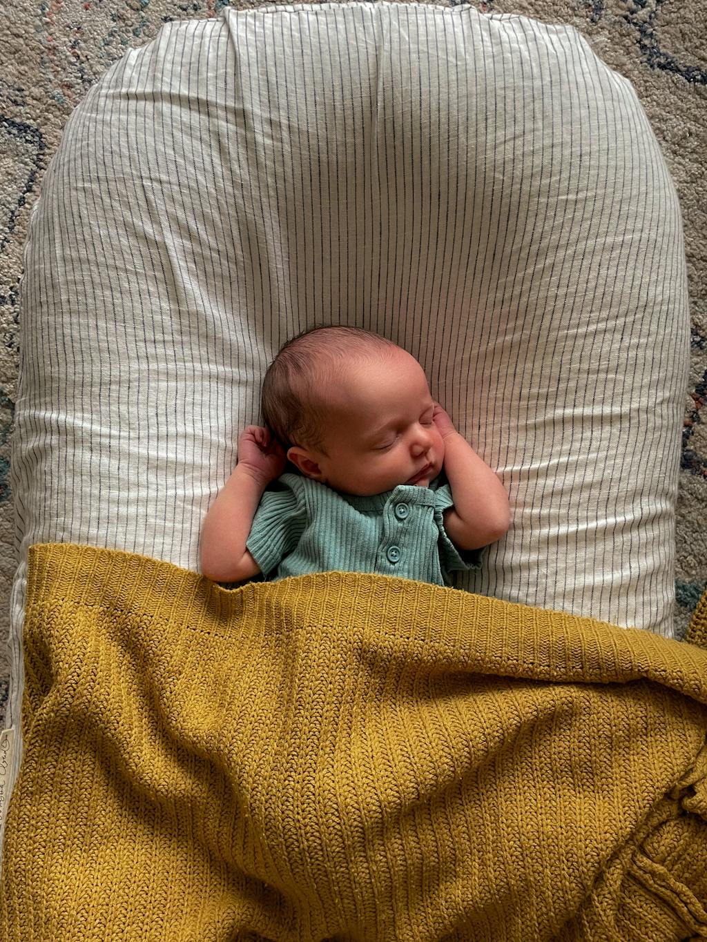 Crafted from organic cotton mesh and wrapped in 100% French Flax Linen, it’s breathable, washable, and designed to move with you: from the living room to the beach, from supervised tummy time to quiet cuddles.